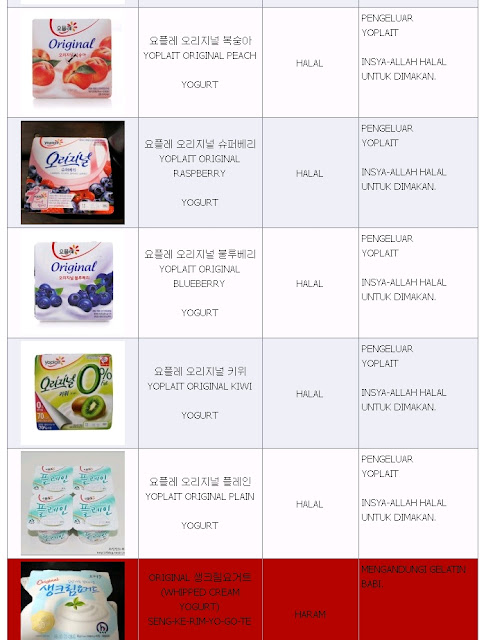 Berikut ini daftar makanan dan produk kosmetik yang sudah dikonfirmasi oleh teman-teman muslimah Indonesia di Korea Selatan (grup FB Muslimah Indonesia- Korea).Silahkan kunjungi muslimahkorea disini. Semoga infonya bermanfaat..^_^